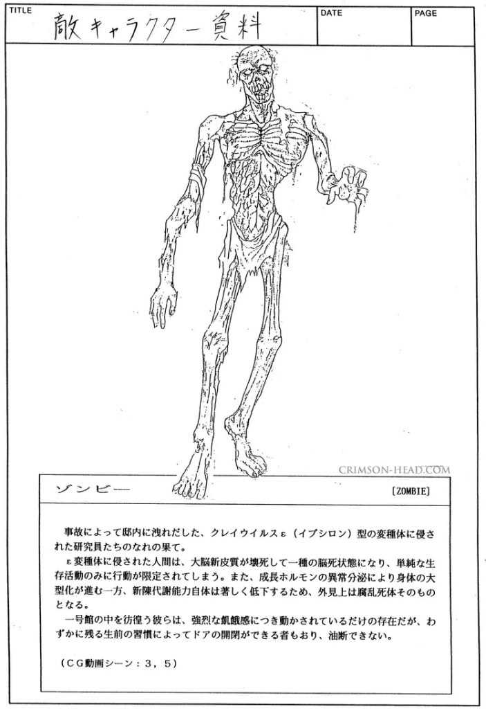 En 1994, Tokuro Fujiwara travaille sur l’idée de remaker un jeu intitulé Sweet Home. Un RPG horrifique de Capcom sorti sur Famicom en 1989 (le jeu ne sortira qu’au Japon). 5 personnages coincés dans un manoir doivent s’en échapper. Le jeu proposait des énigmes ainsi qu’une gestion de l’inventaire. Tous les personnages possèdent un objet unique : caméra, un briquet, crochet à serrures… Pour faire bref, Sweet Home et Resident Evil partagent bien des choses et l’idée de remaker le jeu de 1989 ne put se concrétiser car Capcom ne possédait plus la licence. Mais l’idée du remake donnera l’élan à Capcom pour lancer la production d’un jeu aujourd’hui culte et au nom de code « Horror » durant son développement : Resident Evil en occident, Biohazard au Japon (バイオハザード, Baio Hazādo). Tokuro Fujiwara a déclaré à l’époque : « L’idée de base était que je puisse faire les choses que je n’avais pas pu inclure dans Sweet Home. J’étais principalement frustré par l’aspect graphique. Aussi, j’étais confiant concernant le fait que les jeux d’horreur pouvaient devenir un genre à part entière. » Tokuro Fujiwara ajoute son poulain Shinji Mikami en tant que producteur dans l’équipe. Il fut choisi car « il n’aimait pas avoir peur » et que donc « il comprenait ce qui fait peur. » La première ébauche imaginée par Shinji Mikami ne convainquait par en interne. Il imagina d’abord une histoire dans laquelle il fallait battre un scientifique maléfique dans un manoir mais aussi en sauver un qui était bien intentionné. Le bon scientifique était caché dans le manoir par le scientifique fou et il fallait le délivrer sur plusieurs niveaux. Shinji Mikami qui a appelé Kenichi Iwao en renfort et qui l’a intégré à l’équipe qui travaillait sur le projet a donc vu son travail être repris de zéro car Iwao jugeait que l’idée de départ de son mentor ressemblait trop à Mega Man. Iwao trouvait que le scénario de Mikami ne collait pas avec un jeu d’horreur et que c’était raté. Kenichi Iwao a donc décidé de tout recommencer en conservant les idées de base, c’est à dire le manoir et des personnages qui doivent en sortir. Iwao a rédigé les storyboards des scènes d’ouverture et de fin. Il s’est également occupé de la plupart des textes comme les journaux, les notes et les articles de presse trouvables dans le jeu. Il s’est également occupé des noms des personnages, des organisations, de l’aspect scientifique, des armes à feu, des monstres… C’est d’ailleurs lui qui a imaginé la première rencontre avec un zombie, la fameuse scène devenue iconique. Iwao voulait que le joueur ressente l’aspect cannibale du zombie ainsi que sa brutalité, le regard vide du zombie dans cette séquence était la clé. Il est également à la base de certaines idées de gameplay comme la rareté des munitions et la possibilité d’éviter le combat et il tenait à ce que le jeu mette l’accent sur le son. Kenichi Iwao est allé puiser son inspiration dans les films d’horreur mais aussi d’action : « Oui, j’aime aussi les films d’horreur. La saga Alien est ma préférée ; je l’ai vue enfant et elle m’a beaucoup influencé. Le lance-flammes et l’image du Tyran en sont inspirés. À l’époque, le film Commando avec Arnold Schwarzenegger était aussi très populaire et m’a influencé, notamment avec le lance-roquettes. » Concernant les mécaniques de jeu qui furent laissées de côté, Kenichi Iwao parle de : « des zombies capables d’ouvrir des portes. Des joueurs se barricadant dans une pièce. La possibilité de tuer des zombies avec des mines. La possibilité de déposer des objets au sol. » L’idée des mines fut abandonnée par manque de temps.